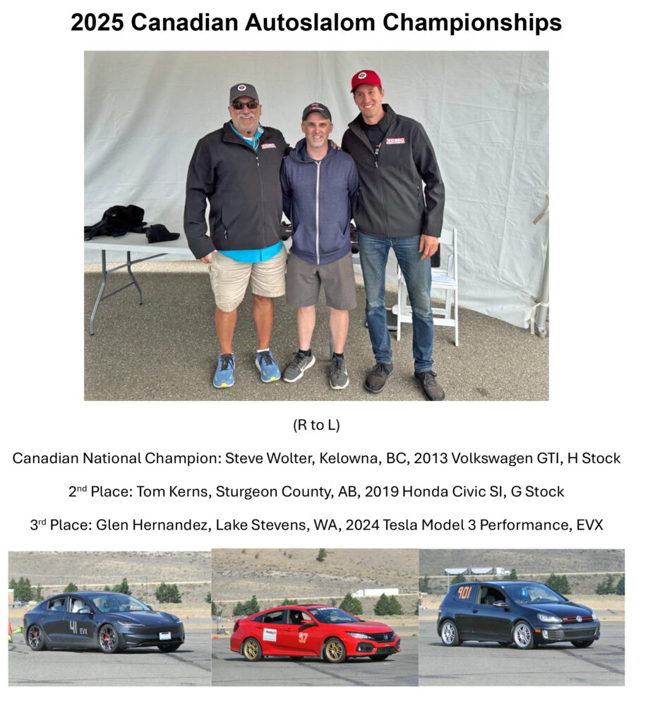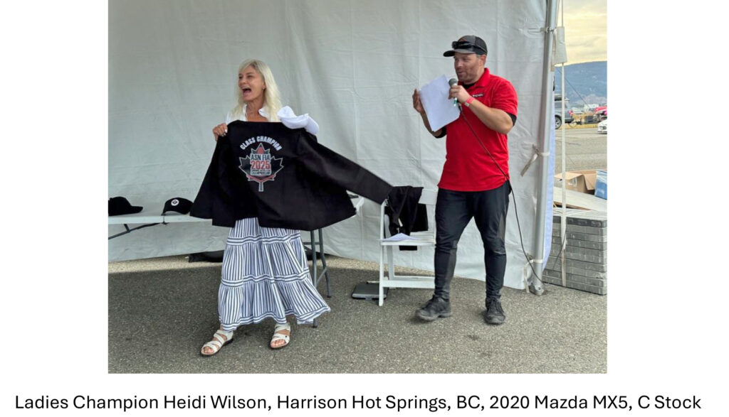 It was a good event and the VCMC club hit their maximum cap of 100 entries. There was a Test & Tune on Friday afternoon, attended by about 1/3 of the field. The weekend courses started out with a few loops on the airport apron and then ran out onto the runway in two directions. There were four courses set up, with two on Saturday and two on Sunday. Competitors had three runs on each course with their fastest times cumulated from the four courses. The spacing between cones on the serpentine sections was up to 32 paces, which challenged the competitors to not hit cones and stay on course. There was one car from Ontario, about a dozen from Alberta, three from the US, and the rest from various areas around BC. Saturday’s runs went from 10:00 AM to about 6:00 PM, followed by a catered Mexican Taco dinner at 7:00. Sunday’s runs went from 9:30 to 5:00 PM followed by awards at 6:00 PM. Class winners received embossed hoodies with the event logo on them.